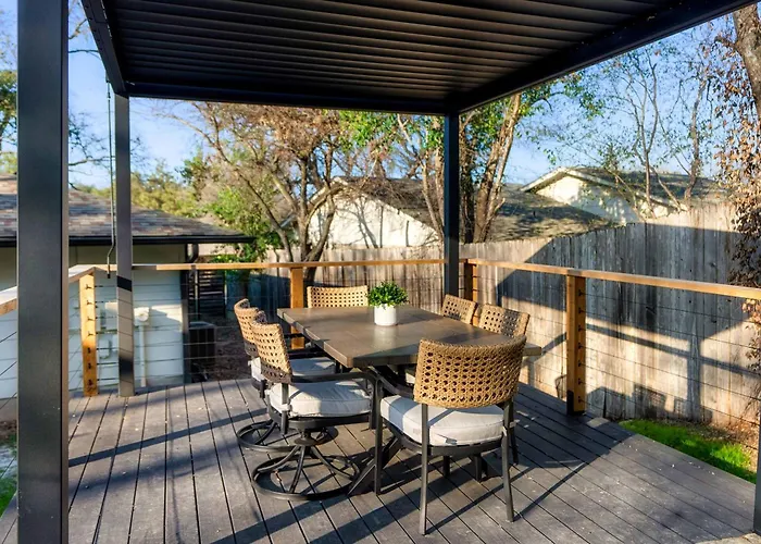 Während des Aufenthalts in dieser Luxury Zilker Home Pool Hot Tub And 2 Kitchens können die Gäste beliebte Sehenswürdigkeiten wie das Barton Springs Pool und den Zilker Botanische Garten erkunden, die 2 bzw. in ungefähr 25 Gehminuten Entfernung von der Unterkunft liegen.